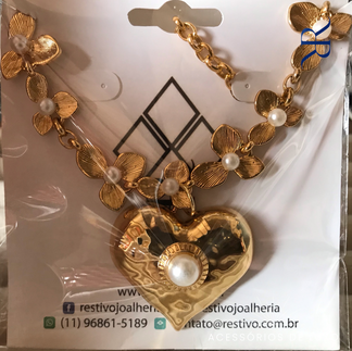 COLAR CORAÇÃO E FLORES ORGÂNICAS COM PEROLAS - R$ 186,00